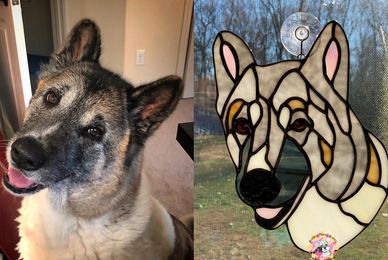 Transform your beloved pet into a stunning stained glass masterpiece. Simply provide a photo of your pet, and within 4-6 weeks (or less), a lifelike representation will be meticulously crafted in stained glass.
